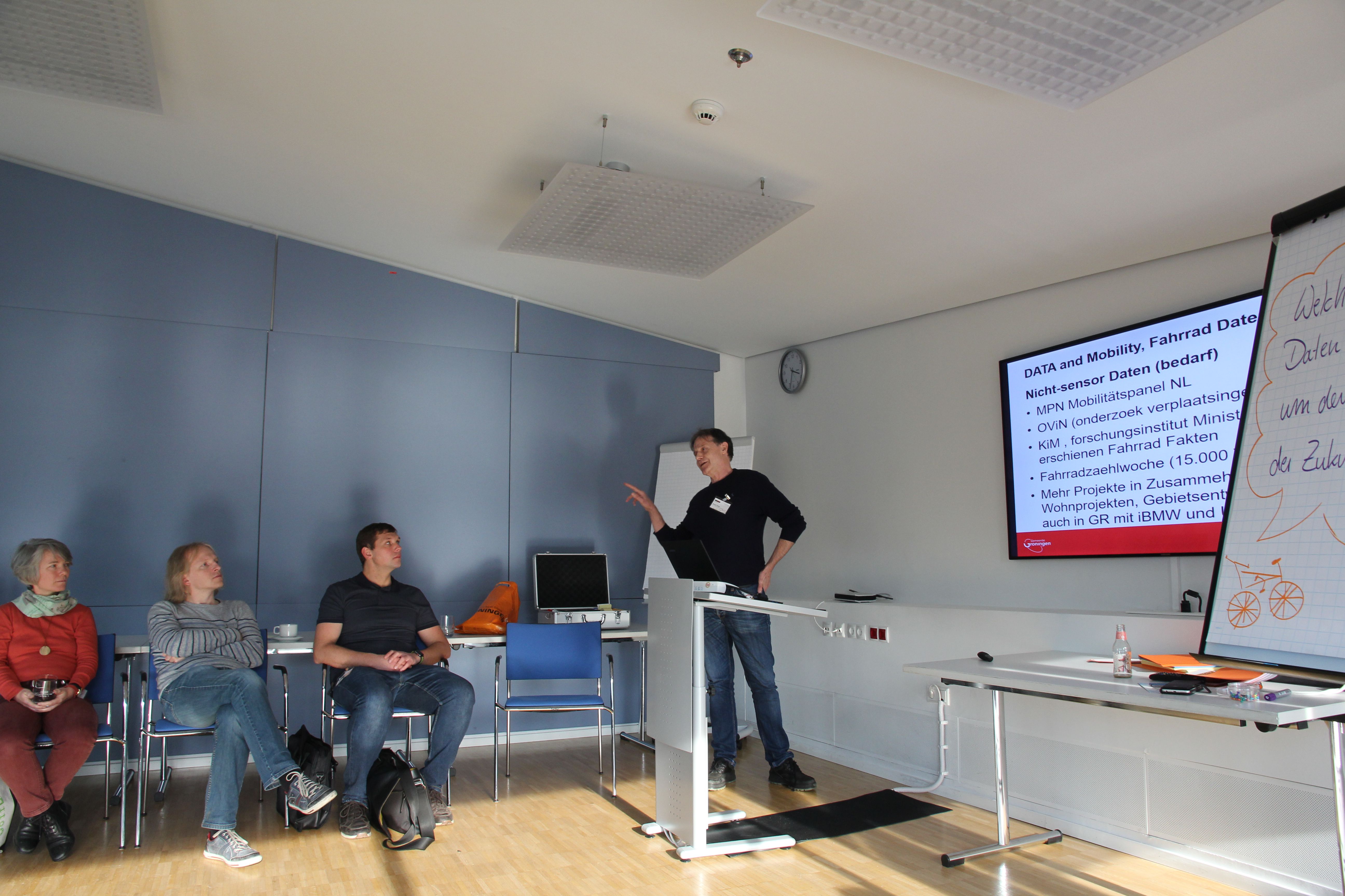 Aufbauend auf der Kurzvorstellung des Projektes erarbeiteten die Teilnehmenden aus verschiedenen mFUND Projekten gemeinsam wichtige Erfolgsfaktoren für die vielversprechende Umsetzung von Bürgerbeteiligungskonzepten. Da in Oldenburg ein starke Fahrradkultur vorherrscht, eignet sich die Stadt an der Hunte hervorragend, um BürgerInnen bei Fahrradprojekten aktiv einzubinden und repräsentative Ergebnisse für große Teile der Bevölkerung zu liefern. Die BürgerInnen sollten nicht nur bei der der Datenerhebung, sondern auch bei der Interpretation der Ergebnisse befragt und beteiligt werden. So kann es unter Umständen sein, dass durch die Sensorik erfasste Wegstellen durch das Projekt selbst als problematisch hinsichtlich der Radwegequalität eingestuft werden, obwohl andere vermeintlich weniger problematische Wegpunkte aus Sicht der Radfahrenden als deutlich kritischer eingestuft werden. Hierzu können z.B. Onlinetools (Bewertung über eine digitale Karte) oder analoge Beteiligungsformen wie etwa geführte Radtouren an potentiell kritische Wegstellen, um das spezifische Nutzerfeedback einzuholen, im Falle künftiger Datenerhabungen umgesetzt werden.